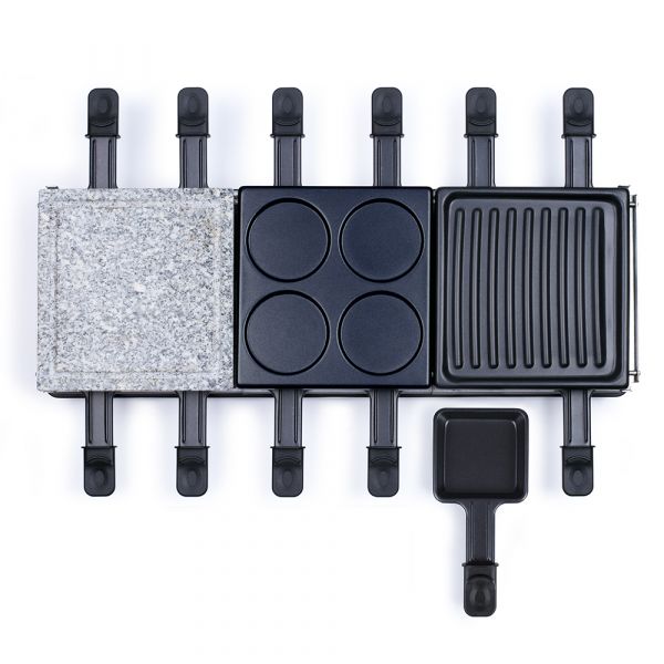 3 plateaux différents pour un usage varié: une pierre à griller, un gril et un plateau mini crêpes