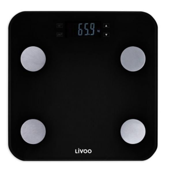 Mesure le poids, l’IMC, le taux de masse graisseuse, musculaire, osseuse et hydrique et les besoins caloriques journaliers Pesée jusqu’à 180 kg 13 mémoires utilisateurs 4 capteurs à jauge de contrainte de haute précision Écran LCD 1 pile au lithium CR2032 incluse Dimensions 33 x 33 x 2 cm Marche...